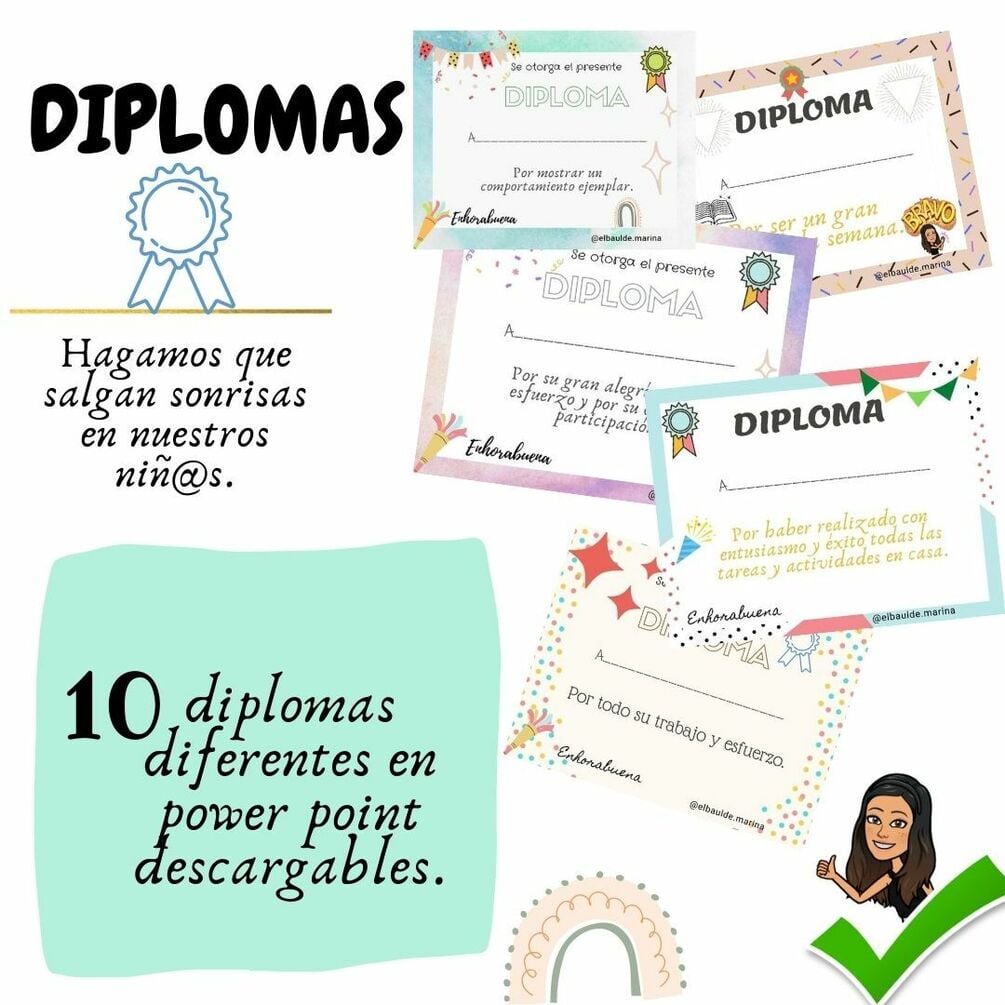 Por fin podéis conseguir los 20 diplomas más motivadores🙋🏻♀️. Un detalle más que he incluido en mis recursos para los niños/as. Hay diploma por ser un gran lector de la semana, por participación, creatividad, comportamiento, por el esfuerzo, por ser un genio en matemáticas, por la responsabilidad y la actitud, por haber realizado una gran investigación y hay uno en inglés por ser un gran estudiante.